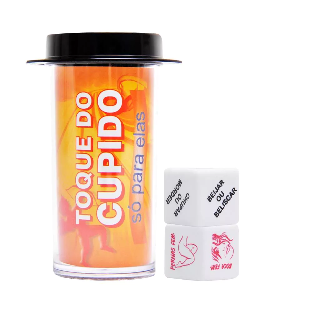 Jogo Dado Toque do Cupido Homodelas. Jogo para adultos com 02 dados, 01 com desenhos de seis diferentes partes do corpo e o outro com as atividades a serem executadas, SÓ PARA ELAS. Dadinho embalado em exclusiva caixinha em acrílico.