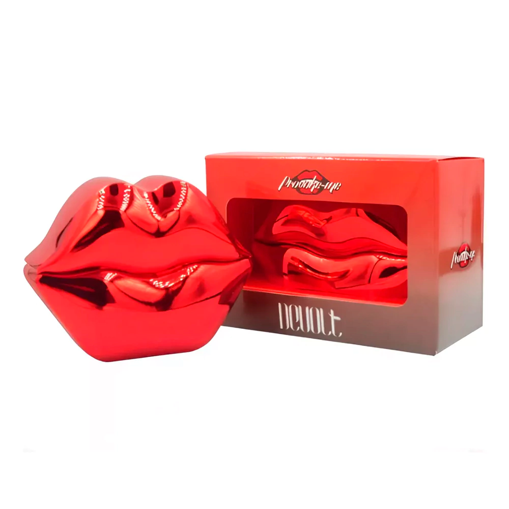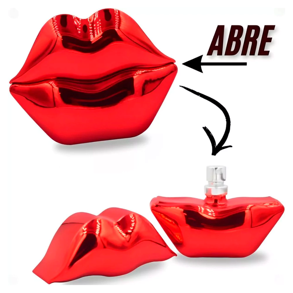 O design icônico do frasco, em forma de lábios metálicos vermelhos, reforça o conceito de provocação e desejo que a marca Provoke-Me representa.