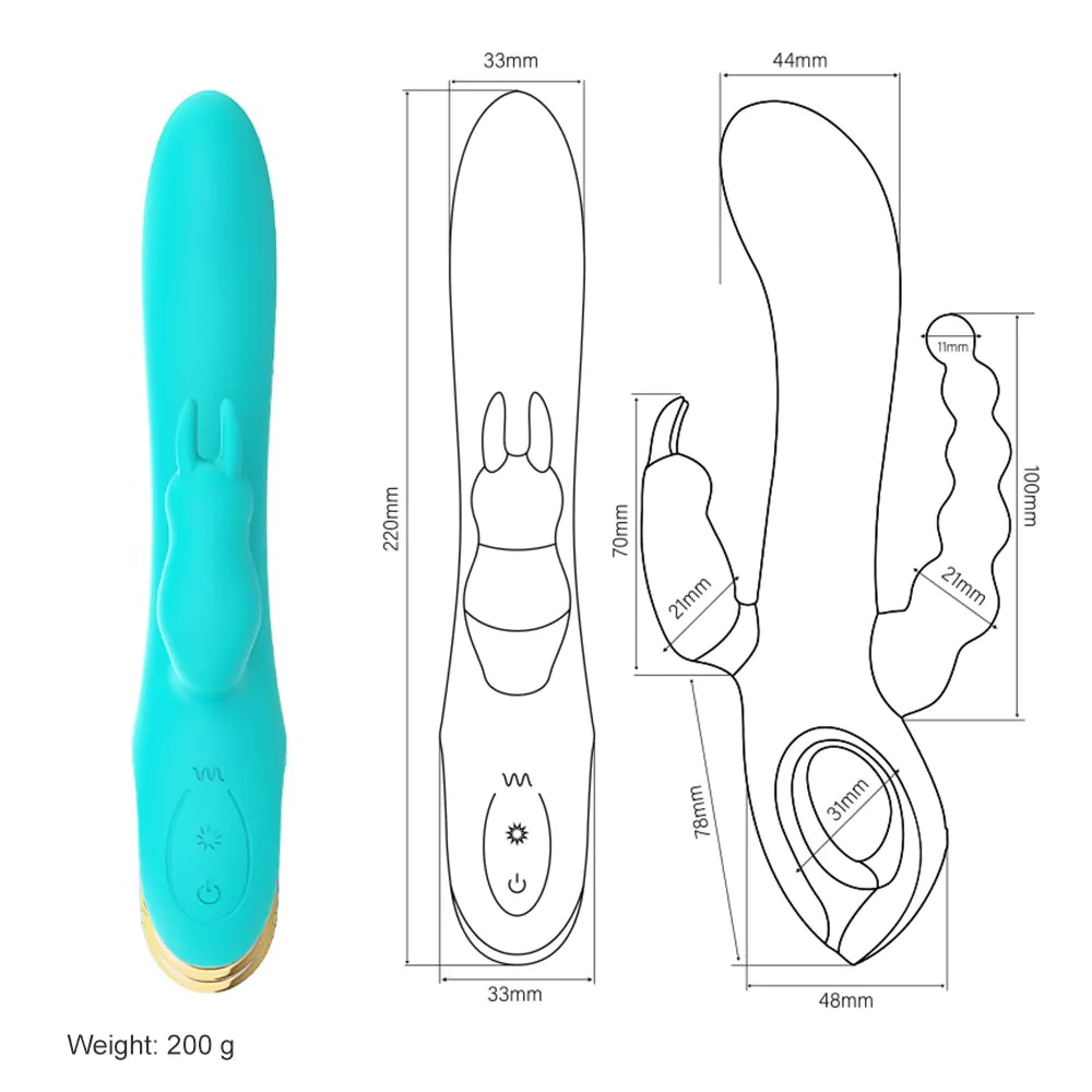 O Rabbit 3 em 1 é um vibrador de alto padrão revestido por silicone, contém um estimulador clitoriano com formato de coelho, ponta levemente curvada para a estimulação do Ponto G e plug para estimulação anal. Possui 10 modos de vibração super silencioso.