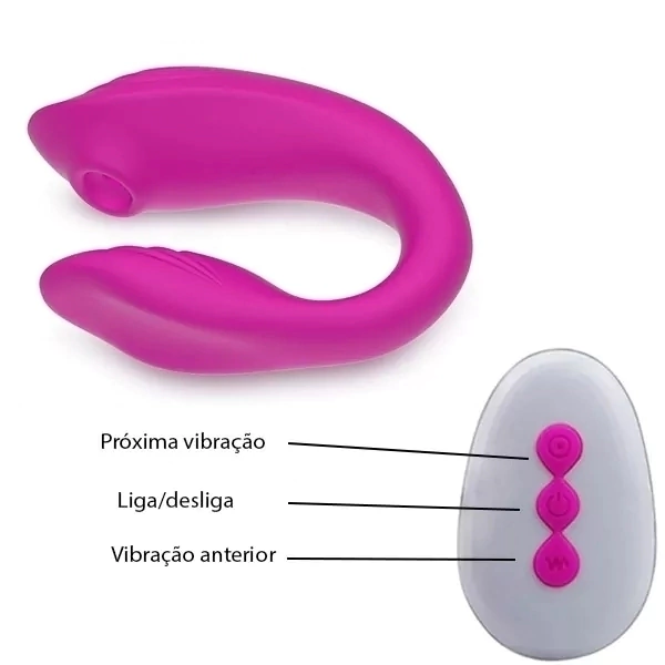 O Vibrador permite o uso a dois com penetração, possui 10 modos de vibração e sucção, sua textura é macia e seu tamanho é compacto. Além disso, o aparelho possui controle remoto para um controle a distância.