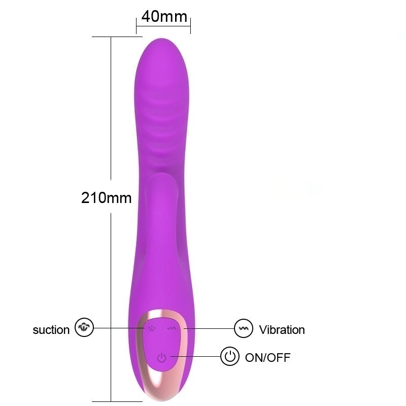 Vibrador sugador com duplo motor de 12 modos de vibração e 12 modos de sugador, feito em silicone de textura leve e macia.